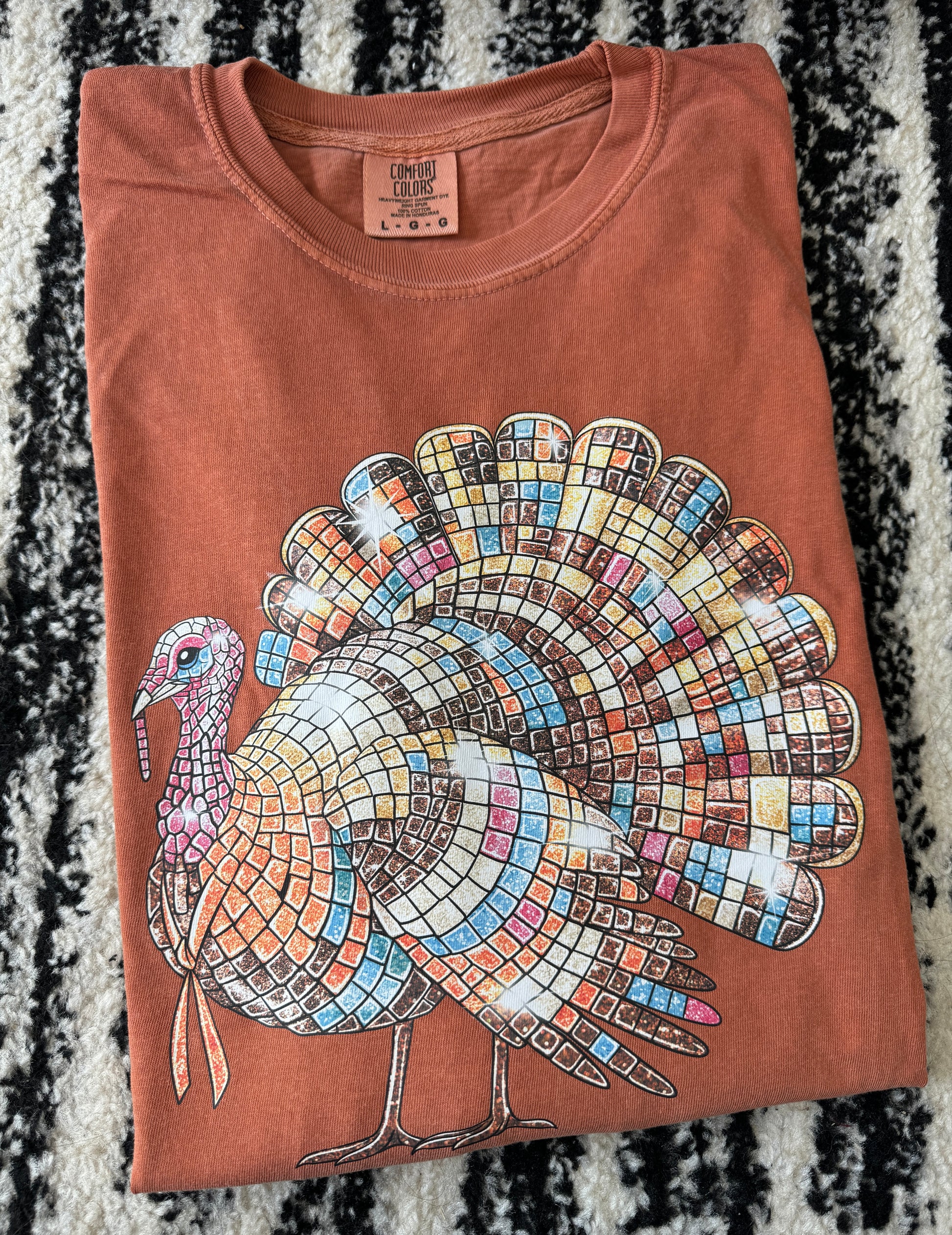 Add a quirky twist to your Thanksgiving attire with our Disco Turkey Shirt! This fun and playful shirt features a sparkly disco ball designed turkey, guaranteed to bring some extra holiday cheer. So strut your stuff and let this shirt be the life of the party! Gobble gobble!
